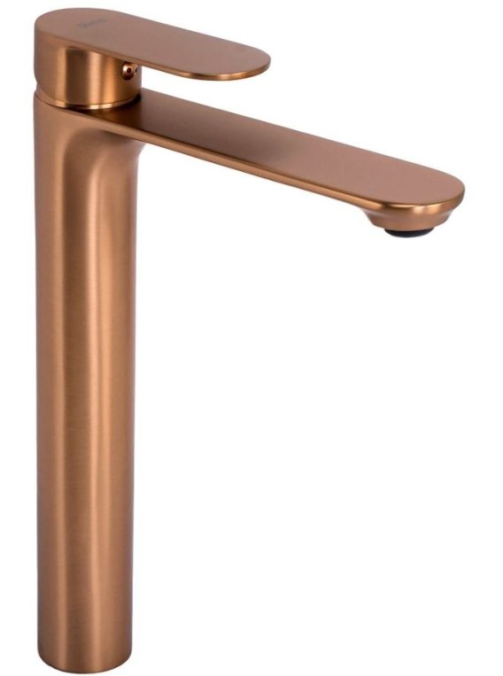 Model Drop został wykonany z wysokiej jakości mosiądzu, co zapewnia trwałość i odporność na korozję. Ceramiczna głowica gwarantuje precyzyjną regulację temperatury i strumienia wody, a wysoka konstrukcja sprawia, że bateria idealnie współgra z umywalkami nablatowymi wolnostojącymi, oferując komfort w codziennym użytkowaniu.