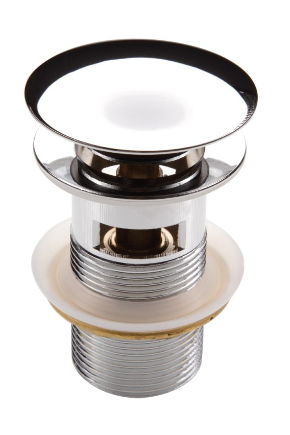Korek click-clack to wysokiej jakości produkt, wykonany z trwałego mosiądzu. Otwarcie i zamknięcie odpływu następuje przez naciśnięcie korka palcem. Jest to model umywalkowy oraz bidetowy, pasuje do umywalek z przelewem. Korek wykończony jest w eleganckim, błyszczącym chromie.