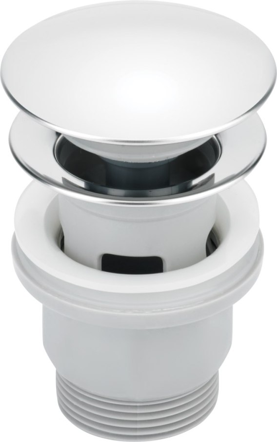 Wygodny system click-clack pozwala na zamknięcie lub otwarcie odpływu jednym przyciskiem. Jest to model umywalkowy oraz bidetowy, pasuje do umywalek z przelewem. Korek wykończony jest w eleganckim, błyszczącym chromie.