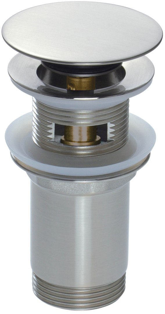 Mosiężny korek click-clack charakteryzuje się uniwersalnym zastosowaniem. Posiada tuleję, dzięki której pasuje do bidetów oraz do umywalek zarówno z przelewem, jak i bez niego. Otwarcie i zamknięcie odpływu następuje przez naciśnięcie korka palcem. Stalowe, szczotkowane wykończenie idealnie pasuje do armatury w tym samym kolorze.