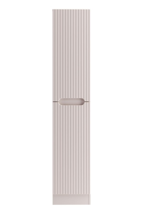 Szafka wysoka dwudrzwiowa z koszem na pranie z kolekcji Nova Cashmere przyciąga wzrok eleganckim minimalizmem, wyrazistymi pionowymi ryflowaniami i perfekcyjnie zintegrowanym podchwytem, który subtelnie podkreśla ponadczasowy charakter mebli. Delikatny dekor Kaszmirowy Beż wprowadza do wnętrza łagodną, ciepłą atmosferę. Kompatybilność z pozostałymi seriami Nova – w dekorach dębu Coast Evoke, bieli, czerni oraz niebieskiego Denimu – pozwala na pełną swobodę aranżacyjną i tworzenie spójnych, ale niepowtarzalnych przestrzeni.