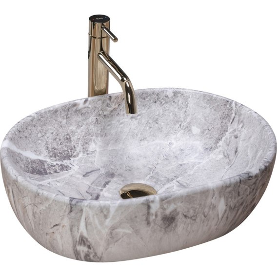 Piękna umywalka imitująca kamień. Dzięki technice w jakiej została wykonywana wierzchnia warstwa umywalki, każdy egzemplarz posiada niepowtarzalny i unikalny wzór. Efekt ten imituje naturalny kamień.