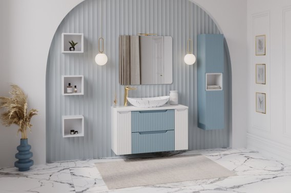 Zestaw meblowy 100cm z blatem i szafką z koszem na pranie