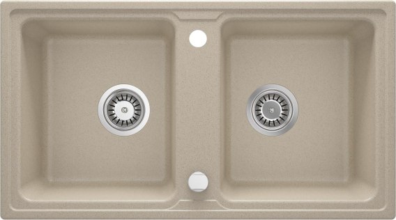 Piaskowy, granitowy zlewozmywak 2-komorowy Zorba z dwiema przestronnymi, prostopadłościennymi komorami to produkt, który doskonale prezentować się będzie w klasycznych lub rustykalnych aranżacjach kuchni. Ciepły, piaskowy odcień akcesorium będzie efektownie kontrastować z drewnianym blatem bądź idealnie wtopi się w przestrzeń roboczą kuchni, zaaranżowaną za pomocą jasnego kamienia lub kompozytu. Prezentowany tu duży zlewozmywak, idealny dla osób, które lubią gotować, wykonany został z granitu i charakteryzuje się wszystkimi zaletami typowymi dla tego niezwykle twardego i odpornego na użytkowanie materiału. Należy do nich odporność na przebarwienia, zarysowania, szok termiczny, temperaturę 250 stopni jak i uderzenia. Ponadto zlewy z kolekcji posiadają właściwości hydrofobowe, co oznacza, że ich powierzchnia nie tylko nie przepuszcza cząsteczek wody, ale także je odpycha, dzięki czemu są dużo łatwiejsze do utrzymania w czystości. Wszystkie te zalety, jak również współczesny, ascetyczny design, eleganckie kolory i uniwersalny charakter sprawiły, że kolekcja zlewozmywaków Zorba wyróżniona została tytułem finalisty konkursu Dobry Wzór 2014 r.